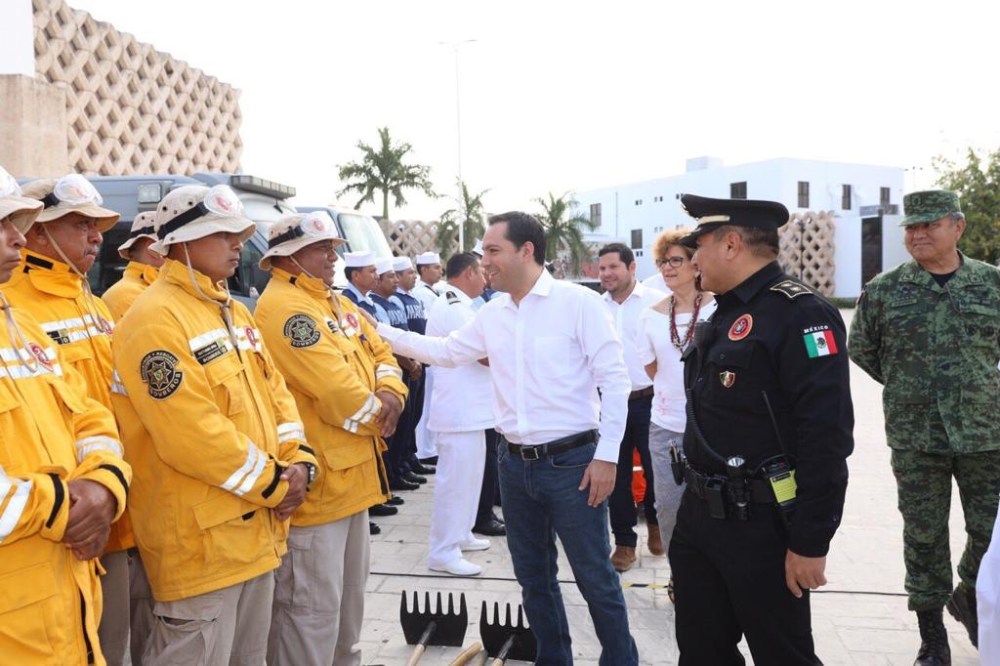 Junto al Comandante de la 32 Zona Militar, General de Brigada Diplomado de Estado Mayor, Andrés Fernando Aguirre O. Sunza y el representante la IX Zona Naval, Teniente Corbeta Médico Cirujano Naval, Rafael Padrón Serrano, el Gobernador indicó que para fortalecer esta capacidad de recuperación ante incendios y otros fenómenos naturales, ya se ha conformado el Consejo Estatal de Protección Civil, que afianza la coordinación entre las fuerzas operativas del estado para orientar acciones de prevención, auxilio y recuperación ante situaciones de emergencia o desastre, además de que se ha ampliado la presencia de Procivy en el estado, al aumentar a 5 el número de bases operativas, ubicadas en Mérida, Izamal, Tekax, Valladolid y Tizimín.