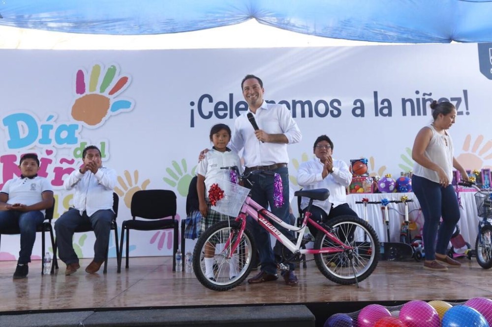 Para festejar a los más pequeños de las familias, acompañado del alcalde anfitrión, Jenrri Chan Peraza, el Gobernador Vila Dosal realizó la rifa de varios juguetes, como bicicletas, patinetas, triciclos y balones de fútbol y basquetbol. Asimismo, se repartieron regalos entre los infantes que acudieron a celebrar, de manera adelantada, el Día de la Niñez.