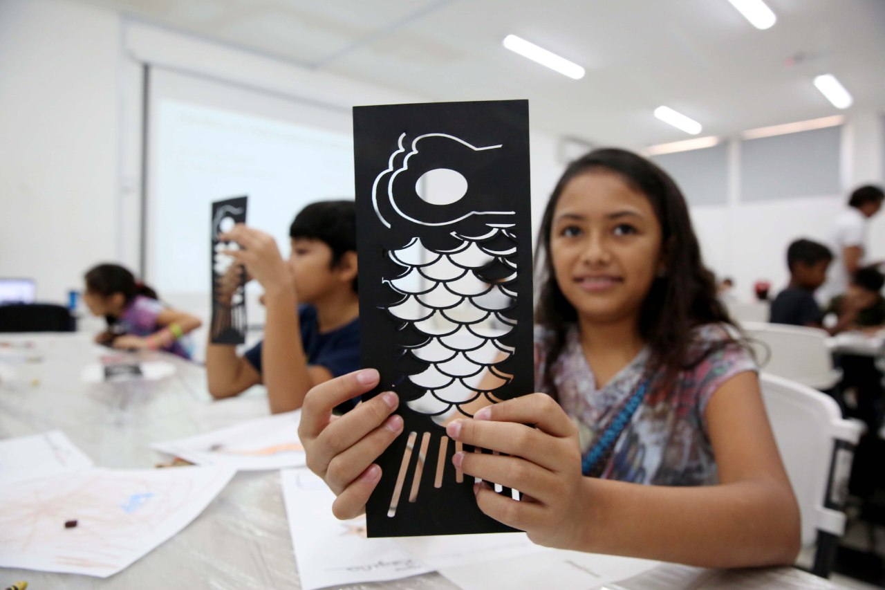 Durante el taller, los niños construyeron un Koinobori, que es la bandera tradicional japonesa en forma de pez koi, así como otros símbolos de esa cultura, mediante técnicas de fabricación digital.