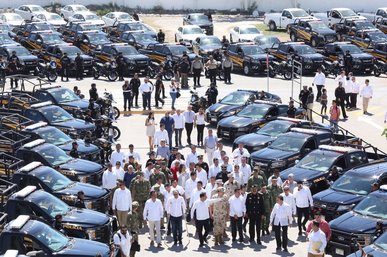 Previo a encabezar la Reunión de Coordinación de Seguridad Zona 2 Sureste, el Gobernador, acompañado del Secretario de Seguridad y Protección Ciudadana, Alfonso Durazo Montaño; de los titulares de las Secretarías de Marina (Semar), el Almirante José Rafael Ojeda Durán; y de Defensa Nacional, General Luis Cresencio Sandoval González; así como del Primer Comandante de la Guardia Nacional, General Luis Rodríguez Bucio, entregó el segundo paquete de automóviles, motocicletas y camionetas, debidamente equipados y rotulados, con lo que se completó la meta establecida de equipar con nuevas unidades a la corporación yucateca.