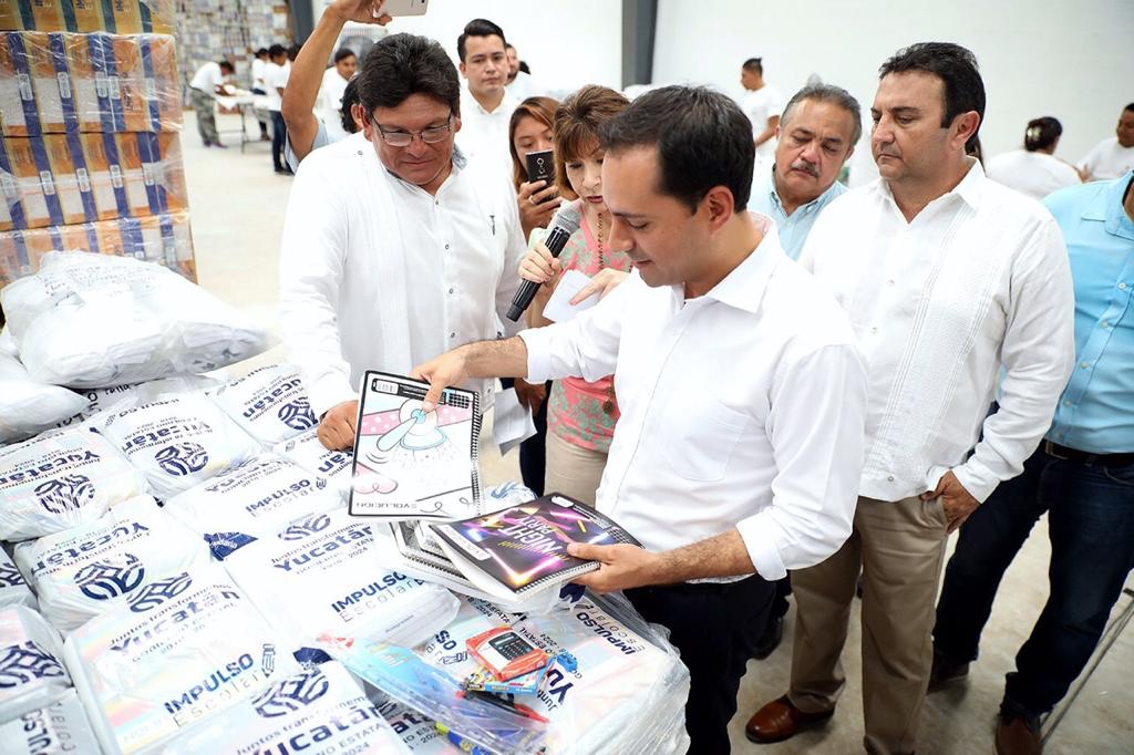 Con la entrega de estos paquetes le seguimos apostando a los estudiantes yucatecos. Por eso, les encargamos mucho a los alcaldes que nos apoyen para que las entregas puedan ser ordenadas, para que se entreguen en tiempo y forma, expresó Vila Dosal.
