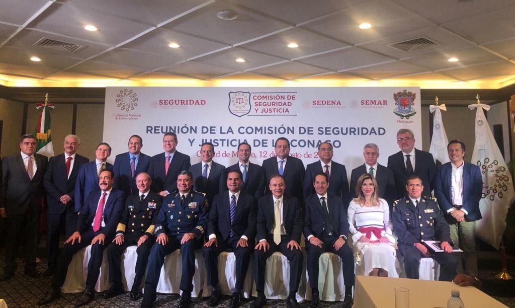 En la reunión, en la que también estuvieron presentes Gobernadores de diferentes estados del país, se abordaron temas relacionados al despliegue de la Guardia Nacional, el Modelo Nacional de Policía, la Estrategia Nacional de Prevención de Adicciones, así como la problemática de los vehículos usados importados de manera ilegal, también conocidos como “autos chocolate”.