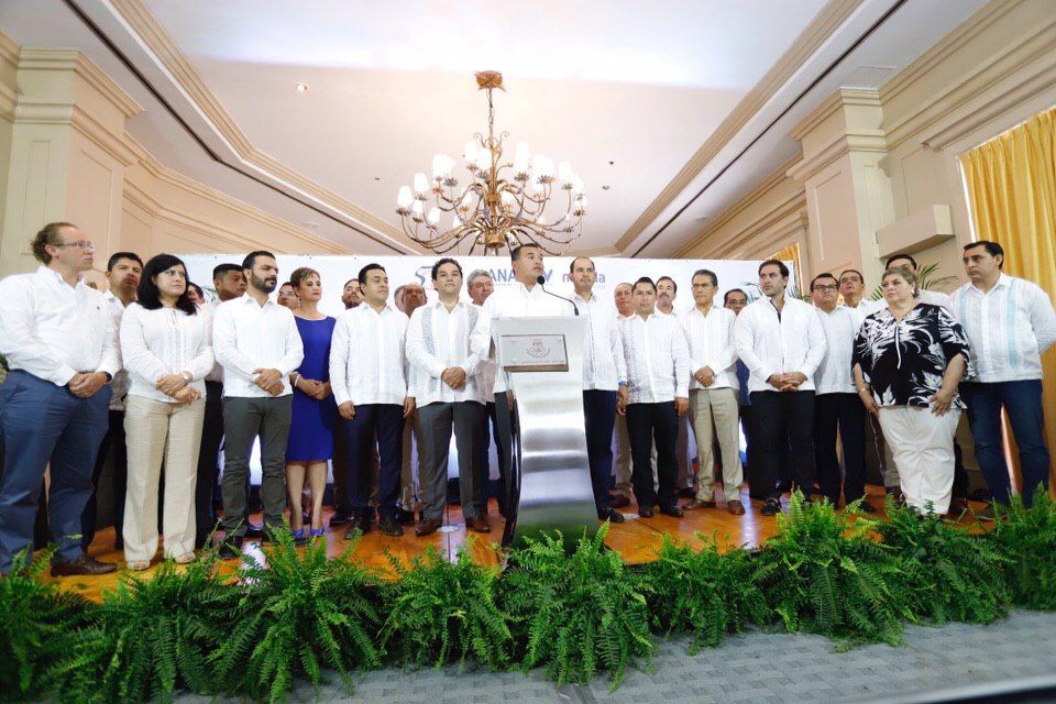 Mérida, 16 de agosto de 2019.— En el marco de la LVIII Sesión Ordinaria del Comité Ejecutivo Nacional de la ANAC, el alcalde Renán Barrera Concha dio a conocer la propuesta de esa agrupación de realizar una Convención Nacional Hacendaria, en la que se planteen cambios en materia fiscal que permitan fortalecer económicamente a los municipios.