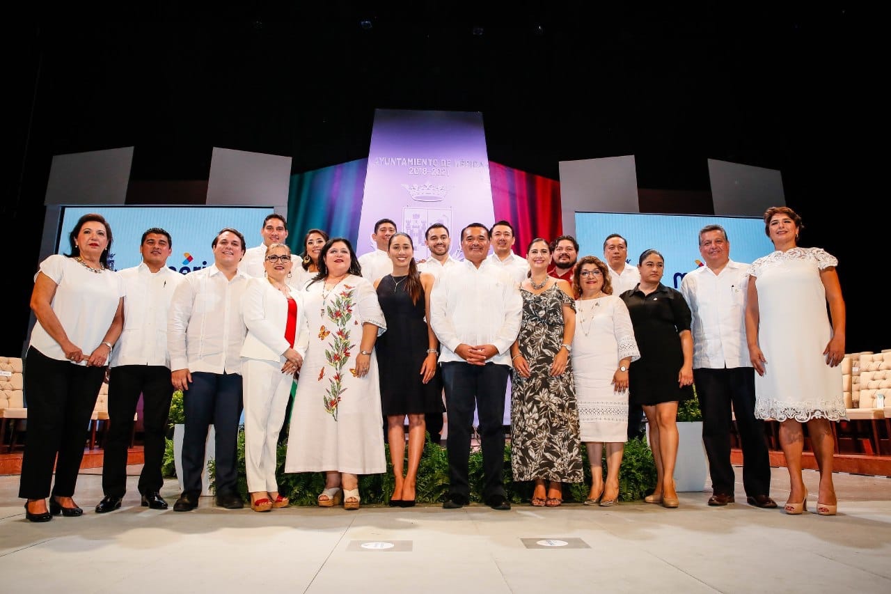 En Sesión Solemne de Cabildo, celebrada en el teatro Armando Manzanero, Renán Barrera agradeció el trabajo del equipo municipal, el acompañamiento y la coordinación con los otros órdenes de gobierno y agrupaciones civiles porque es lo que ha permitido llegar a un primer año de trabajo lleno de satisfacciones.