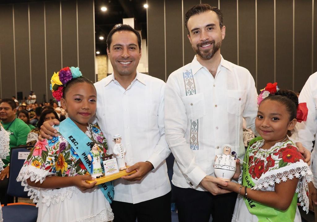 En ese marco, Vila Dosal fue reconocido por su labor en el impulso a la niñez y juventud yucateca y recibió de la Fundación EducarUno y Somos el Cambio una memoria que contiene los proyectos de Yucatán de este 2019. Además, entregó la estafeta de la Premiación Nacional “Tú y Yo Somos el Cambio” 2020 al secretario de Educación de Sonora, Víctor Guerrero González.