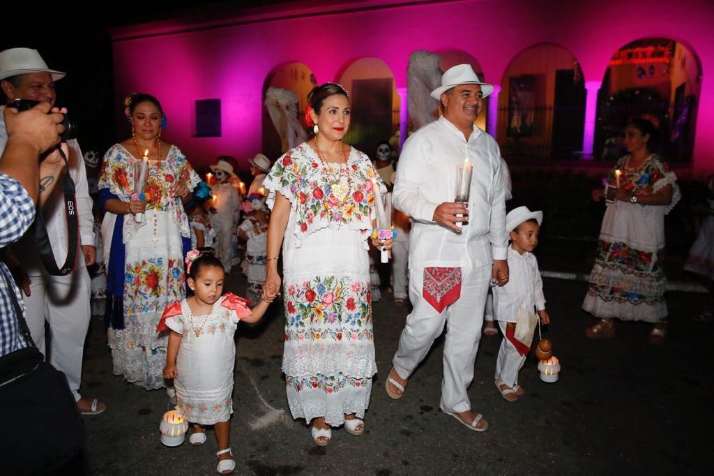 Acompañado de su esposa Diana Castillo Laviada, presidenta del DIF Municipal, y de sus hijos Renán y Daniela, todos luciendo el traje regional, el presidente municipal llegó al Cementerio poco antes de las 20 horas para encabezar el tradicional evento.