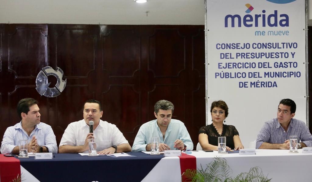 Mérida, 12 de diciembre de 2019.—Para el Ayuntamiento es fundamental el ejercicio transparente de los recursos, que son de todos los meridanos, así como la estricta vigilancia de su distribución y ejecución, a fin de destinarlo a los proyectos y programas más necesarios en la ciudad, afirmó el alcalde Renán Barrera Concha al encabezar la Cuarta Sesión Ordinaria del Consejo Consultivo del Presupuesto y Ejercicio del Gasto del Municipio de Mérida 2018-2021.