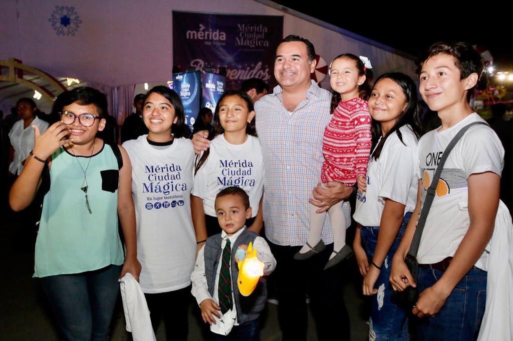 Mérida, 3 de febrero de 2020. En respuesta a la elevada afluencia que se mantiene en “Ciudad Mágica”, ésta continuará abiertahasta el próximo jueves 6, con la intención de que más familias disfruten este espacio que por primera vez ofrece a los meridanos una pista de hielo de gran magnitud, en la que pueden patinar de manera gratuita, indicó el alcalde Renán Barrera Concha.