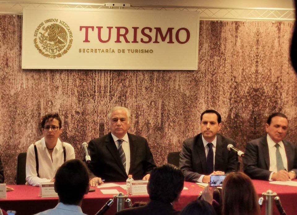En la rueda de prensa también estuvieron la secretaria de Fomento Turístico, Michelle Fridman; el presidente de la Confederación de Cámaras Nacionales de Comercio, Servicios y Turismo (Concanaco-Servytur), José Manuel López Campos; y el dirigente de la Asociación Mexicana de Cadenas de Hoteles, Braulio Arsuaga Losada.