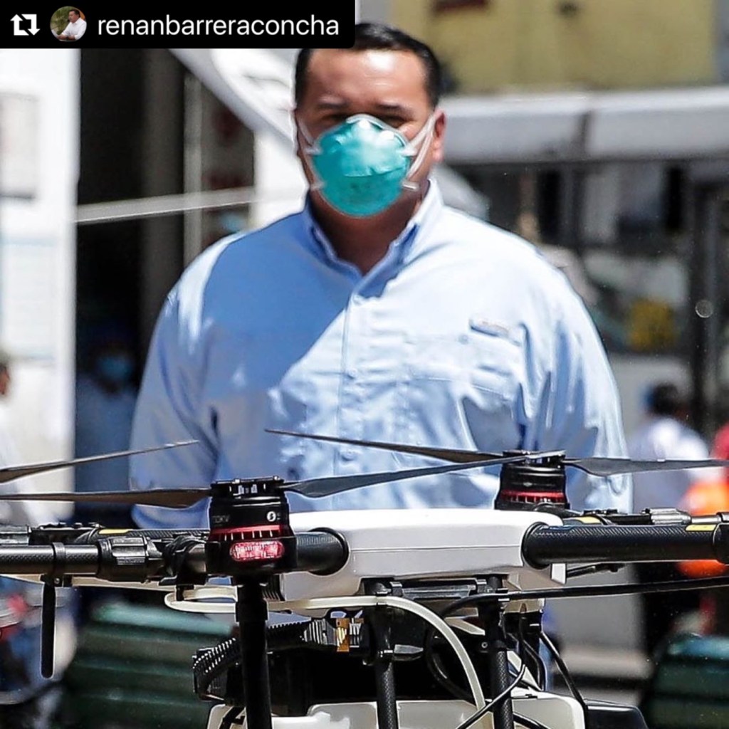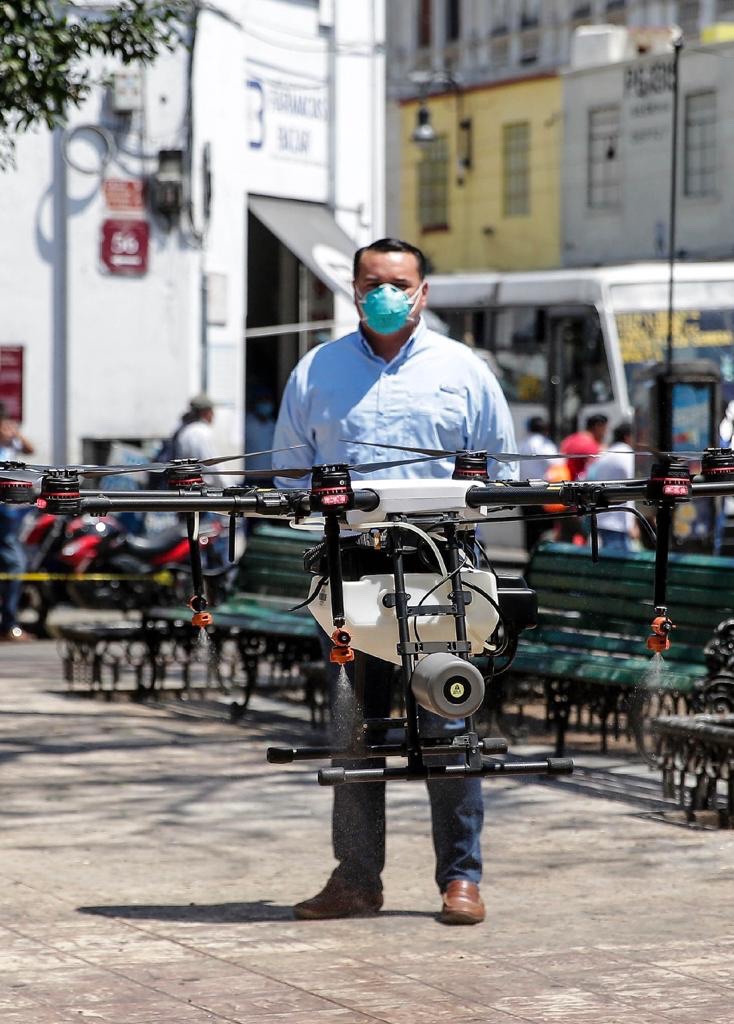 Mérida, 4 de abril de 2020.— Con un innovador método de sanitización a través de drones, en el Ayuntamiento de Mérida seguimos fortaleciendo las medidas para evitar la propagación del coronavirus y salvaguardar la salud de las y los meridanos, afirmó el alcalde Renán Barrera Concha.