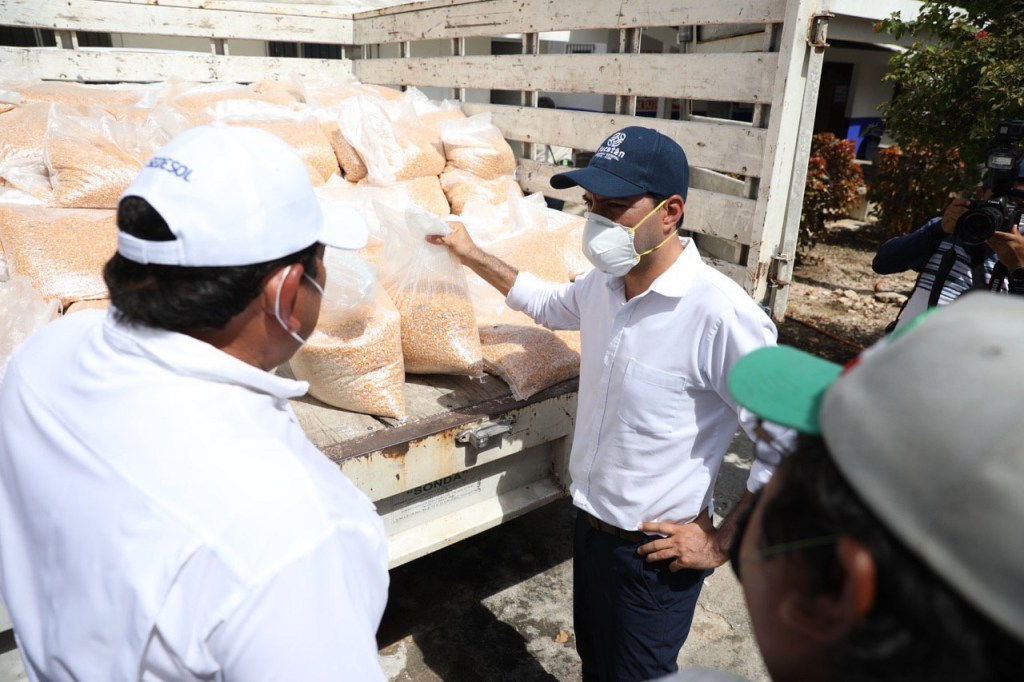 A su arribo al municipio de Yobaín, acompañado del alcalde anfitrión Miguel Ángel May Vera, el Gobernador se encontró con los pobladores frente al comedor comunitario “Ko O Ten Hanal» para escuchar sus necesidades y anunció que el fin de semana próximo los productores del campo recibirán semillas de maíz e insumos para sembrar.