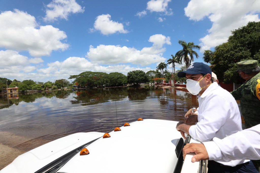 Mérida, Yucatán, 10 de junio de 2020.- Vamos a trabajar hombro a hombro, los yucatecos juntos hemos superado situaciones difíciles y ésta no será la excepción, afirmó el Gobernador Mauricio Vila Dosal a los habitantes de los municipios de Yobaín y Dzemul, poblaciones que también resultaron afectadas con inundaciones a causa de las fuertes lluvias que dejó “Cristóbal” en su paso por Yucatán.