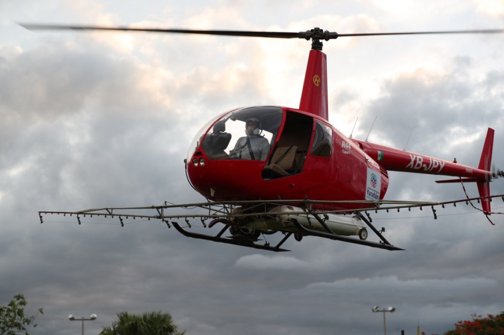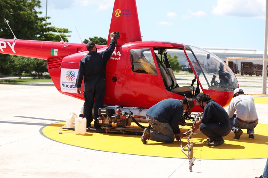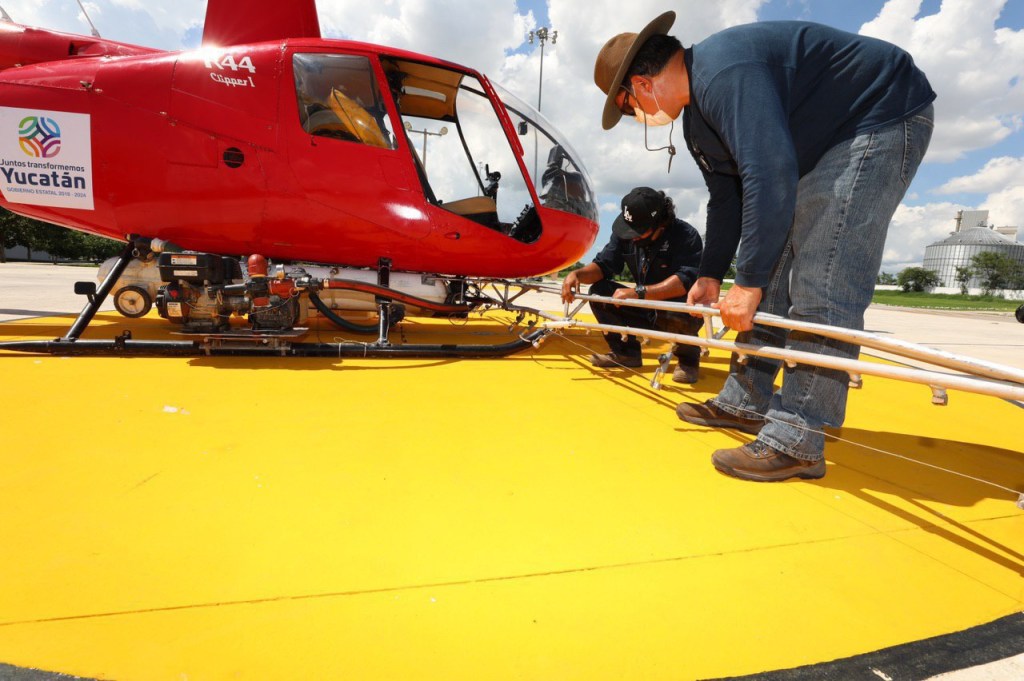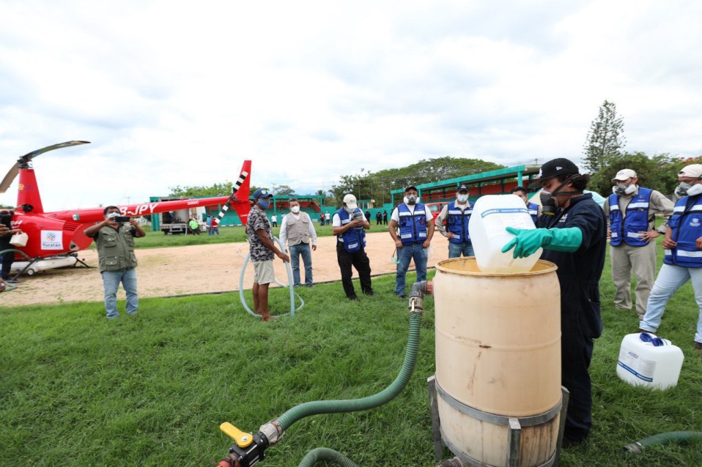 Por disposición de Vila Dosal y como parte del Plan Emergente de Fumigación por este fenómeno natural, con apoyo de 2 helicópteros Robinson 44 se cubrirá un total de 500 hectáreas que comprenden los municipios de Dzidzantún, Dzilam González, Ixil, Dzemul, Sinanché, Dzilam de Bravo y Yobaín.