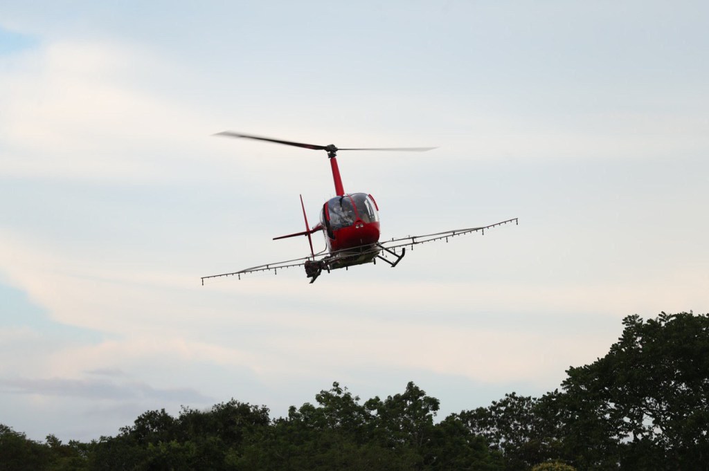 Durante la aplicación, las aeronaves vuelan a unos 90 kilómetros por hora Km/h, a unos 30 metros de altura. La hora ideal de aplicación es a partir de las 5:30 de la tarde.