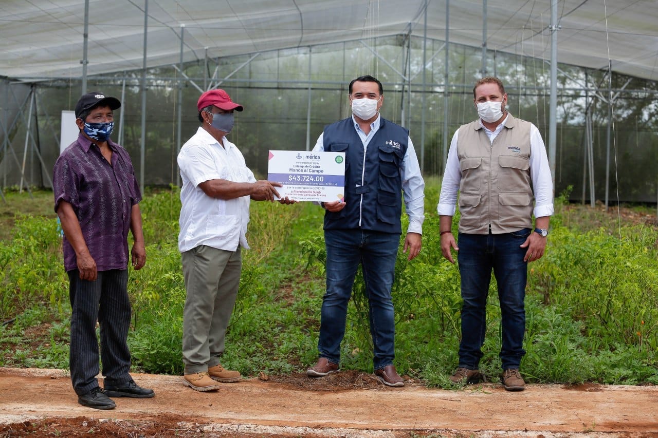 Acompañado por el director de Desarrollo Económico, José Luis Martínez Semerena, y de los comisarios de Texán Cámara y Tzacalá, Luis Gabriel Sulú Aké y Armando Yam Chan, respectivamente, y respetando los protocolos sanitarios, Barrera Concha entregó en este primer punto un monto aprobado de $41,200, al tiempo que destacó que estos apoyos se están otorgando a la gente que realmente lo necesita y aseveró que seguirá impulsando el campo con distintos programas que ayuden a los que se encuentran en estado de vulnerabilidad.