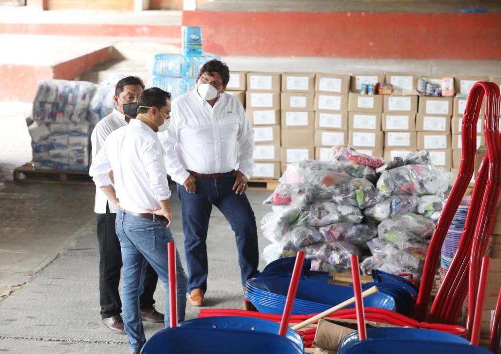 Además, se distribuyen 27,000 impermeables, 58,424 costales, 27,000 pares de botas, 1,000 palas, 1,000 picos, 1,000 carretillas y 1,000 machetes para uso en las áreas de Protección Civil en las localidades donde se realizó la Declaratoria de Emergencia como parte de los apoyos gestionados ante el Fonden.