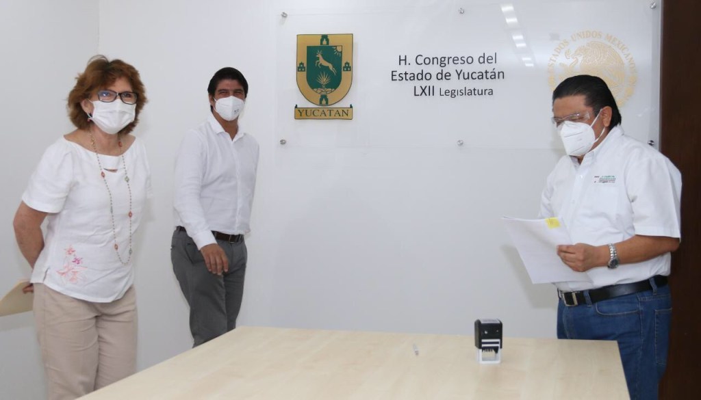 Acompañada del consejero Jurídico, Mauricio Tappan Silveira, la titular de la SGG entregó de manera formal la iniciativa al secretario General del Poder Legislativo, Martín Enrique Chuc Pereira, misma que será turnada a comisiones para su análisis, discusión y dictamen correspondiente.