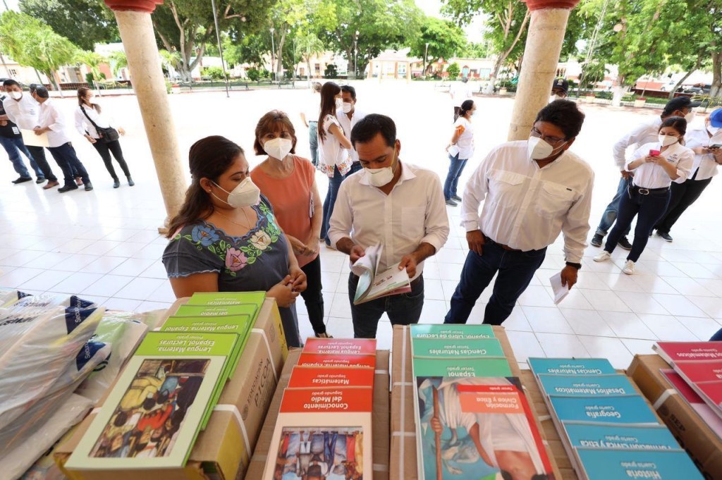 Durante una gira de trabajo por los municipios de Cenotillo y Tunkás, el Gobernador Mauricio Vila Dosal supervisó la distribución de estos materiales, que forman parte de los 272,840 que se entregarán a alumnos de escuelas públicas de nivel primaria de todo el estado y secundaria de municipios del interior del estado y comisarías de Mérida.