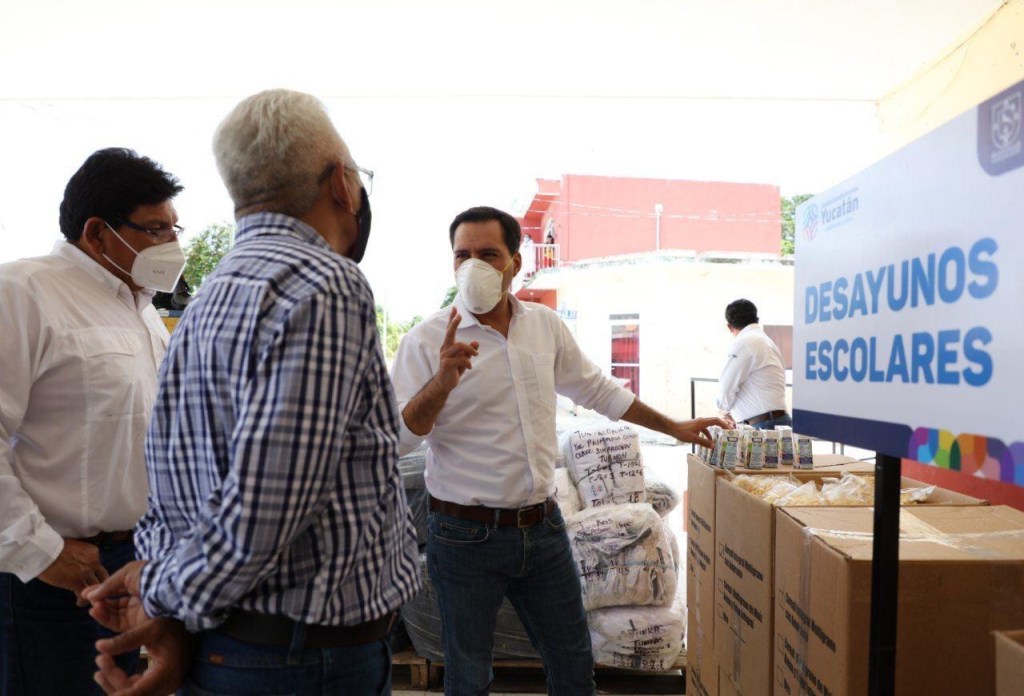 Acompañado de la titular de la Secretaría de Educación (Segey), Loreto Villanueva Trujillo, Vila Dosal constató también la llegada de los libros de texto gratuito y de los desayunos escolares que se repartirán entre 115,000 estudiantes de preescolar y primero y segundo grado de primaria de todo el estado para que cuenten con esos productos alimenticios, aunque por el momento no haya clases presenciales.