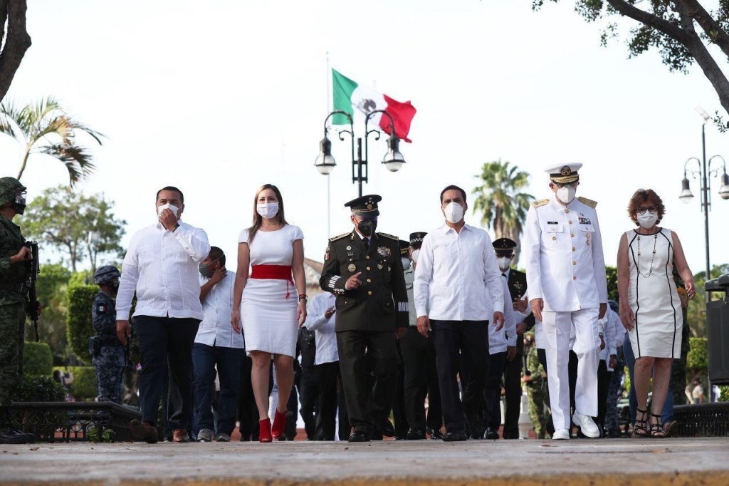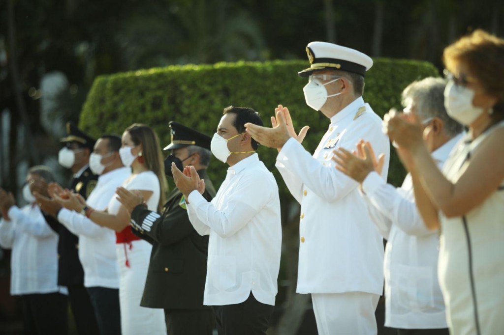 Acompañado de autoridades civiles y militares, Vila Dosal presidió este homenaje para recordar a las víctimas de este virus y en reconocimiento a la labor de los trabajadores del sector salud desde la Plaza Grande de Mérida, en el asta central izó la bandera nacional para rememorar esta fecha trascendental en la vida del país.