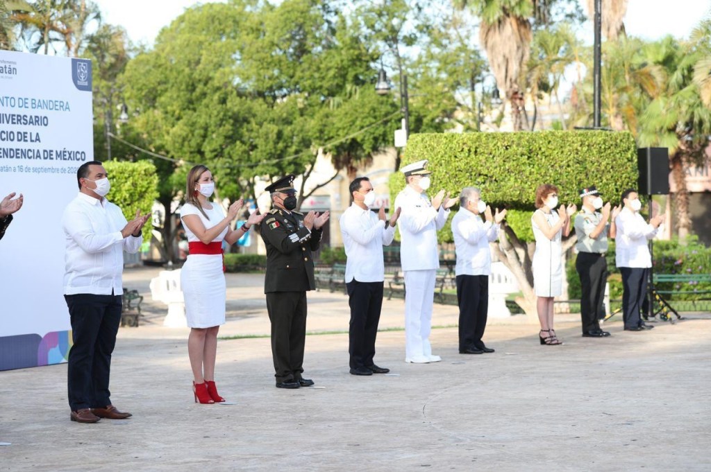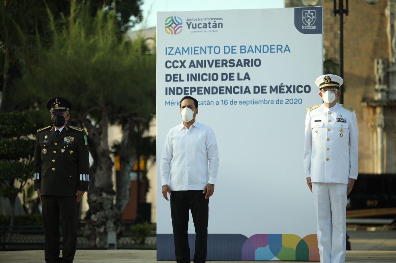 Tras izar el lábaro patrio, Vila Dosal y las demás autoridades presentes rindieron honores a la bandera nacional y para concluir entonaron el himno nacional mexicano, en una ceremonia que se llevó a cabo sin la presencia de público, ni invitados, como medida para evitar aglomeraciones, reducir riesgos de contagio de Coronavirus y proteger la salud de los yucatecos.