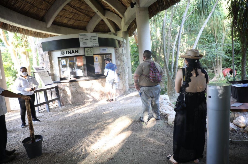 Como parte del Acuerdo Económico para la Reapertura Segura de Yucatán, desde las 8 de la mañana, hora en que comenzó el acceso, se formaron filas en las taquillas para adquirir los boletos de entrada para que los turistas pudieran ingresar y recorrieran esta ciudad prehispánica, bajo todas las medidas sanitarias apropiadas.