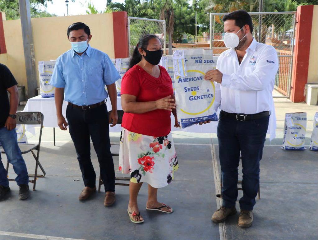 Mérida, Yucatán, 1 de enero de 2021.- Para fortalecer la actividad productiva para autoconsumo en el campo y contribuir a generar ingresos para las familias con el excedente de la cosecha, el Gobierno de Mauricio Vila Dosal puso en marcha la entrega de 2,400 paquetes de semillas de frijol para siembra en apoyo de los pequeños productores de los diversos municipios en el estado.