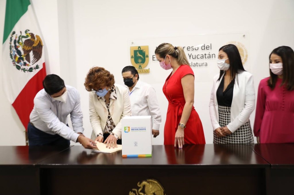 En la entrega del Informe, estuvieron presentes los diputados Paulina Viana Gómez, Luis María Aguilar Castillo y Fátima Perera Salazar y el Secretario General de Congreso, Martín Chuc Pereira.