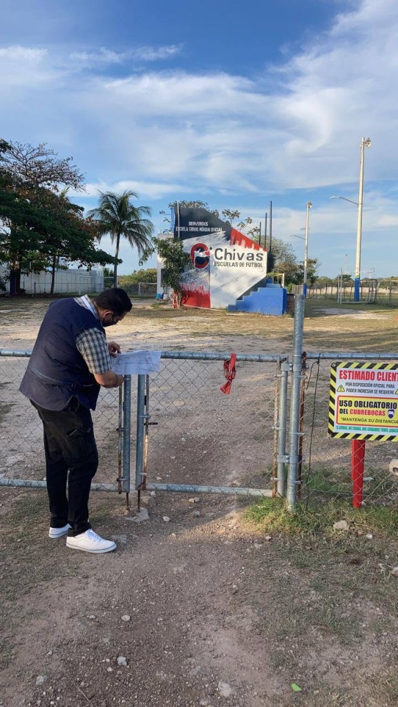 Mientras que, en la unidad deportiva Chivas Mérida de Cholul, personal del Gobierno estatal procedió a clausurar este sitio debido a que en él se estaba desarrollando una jornada de visoria a niños y adolescentes menores de 16 años, acto que también congregaba a los padres de familia que acudieron en acompañamiento.