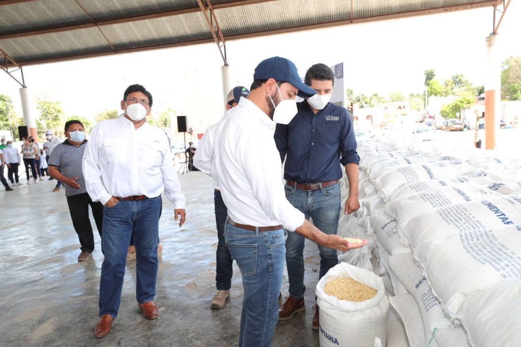 Posteriormente, Vila Dosal supervisó la distribución de maíz para consumo dentro del programa “Seguridad Alimentaria” que beneficia a 224,000 familias que más lo necesitan de 75 municipios del estado y que se está haciendo llegar casa por casa, como parte de un esfuerzo del Gobierno del Estado en el que se destinan 61 millones de pesos.
