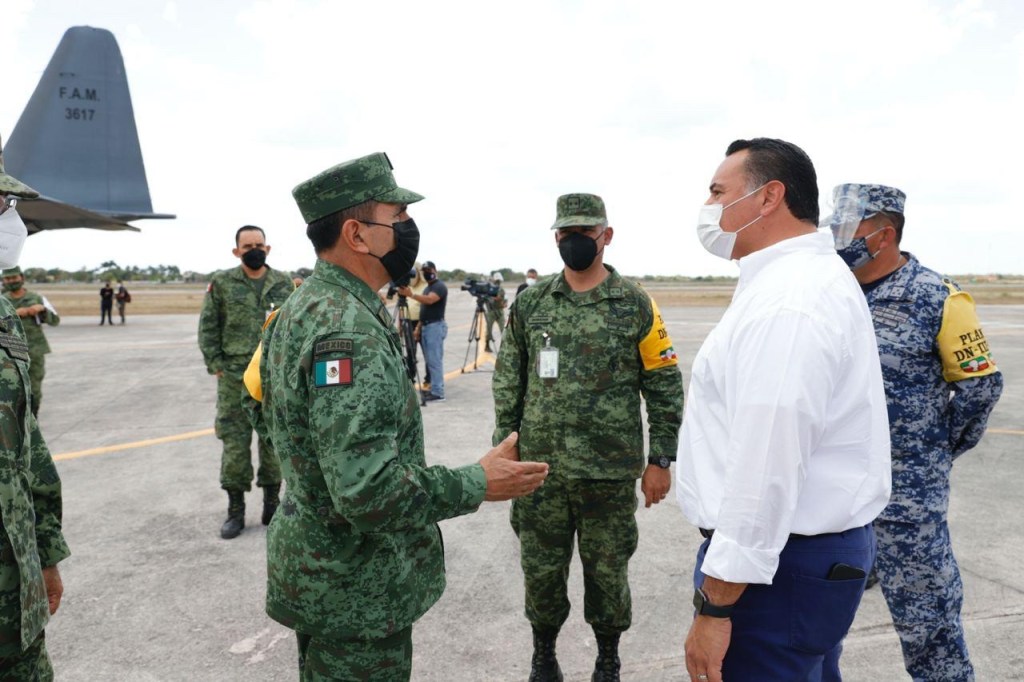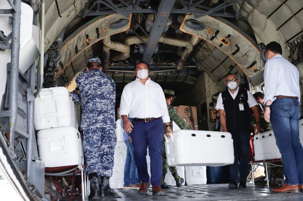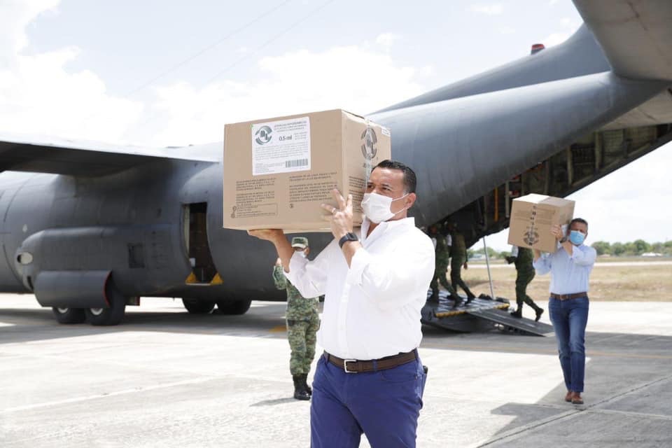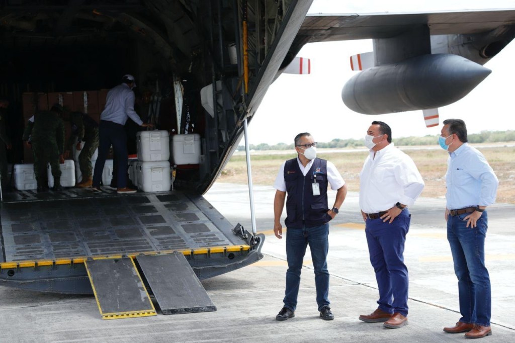El titular de la Secretaría de Salud del estado (SSY), Mauricio Sauri Vivas y el coordinador Estatal para la Vacunación Covid-19, Capitán de Corbeta Carlos Gómez Montes de Oca supervisaron, junto con autoridades militares, federales y municipales, la llegada de este nuevo cargamento, el cual aterrizó en la Base Aérea Militar (BAM) Número 8 de esta ciudad a bordo de la aeronave Hércules C-130 matrícula 3617 de las Fuerzas Armadas a las 13:00 horas, proveniente de la Ciudad de México.
