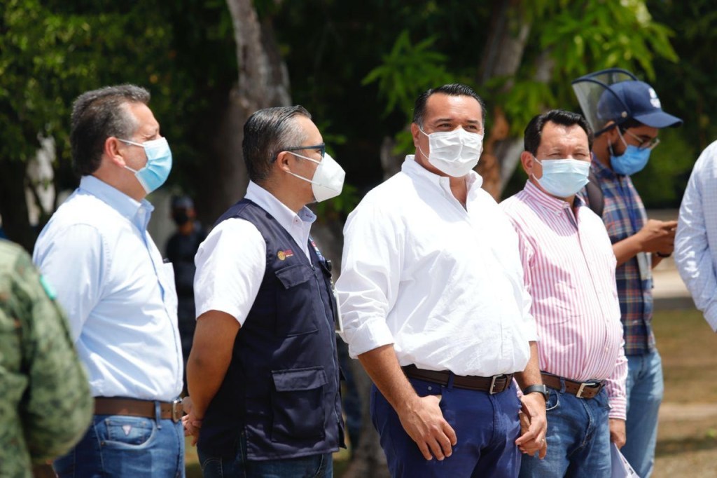 Acompañados del alcalde de Mérida, Renán Barrera Concha, el comandante de la X Región Militar, General de División Homero Mendoza Ruiz y el Delegado del Bienestar del Gobierno federal, Joaquín Díaz Mena, Sauri Vivas y Gómez Montes de Oca constataron la llegada del cargamento, el cual fue descargado por personal del Ejército y colocado en un camión thermoking de la SSY para luego ser trasladadas al almacén estatal de vacunas, desde donde se distribuirán a los lugares donde se aplicarán.