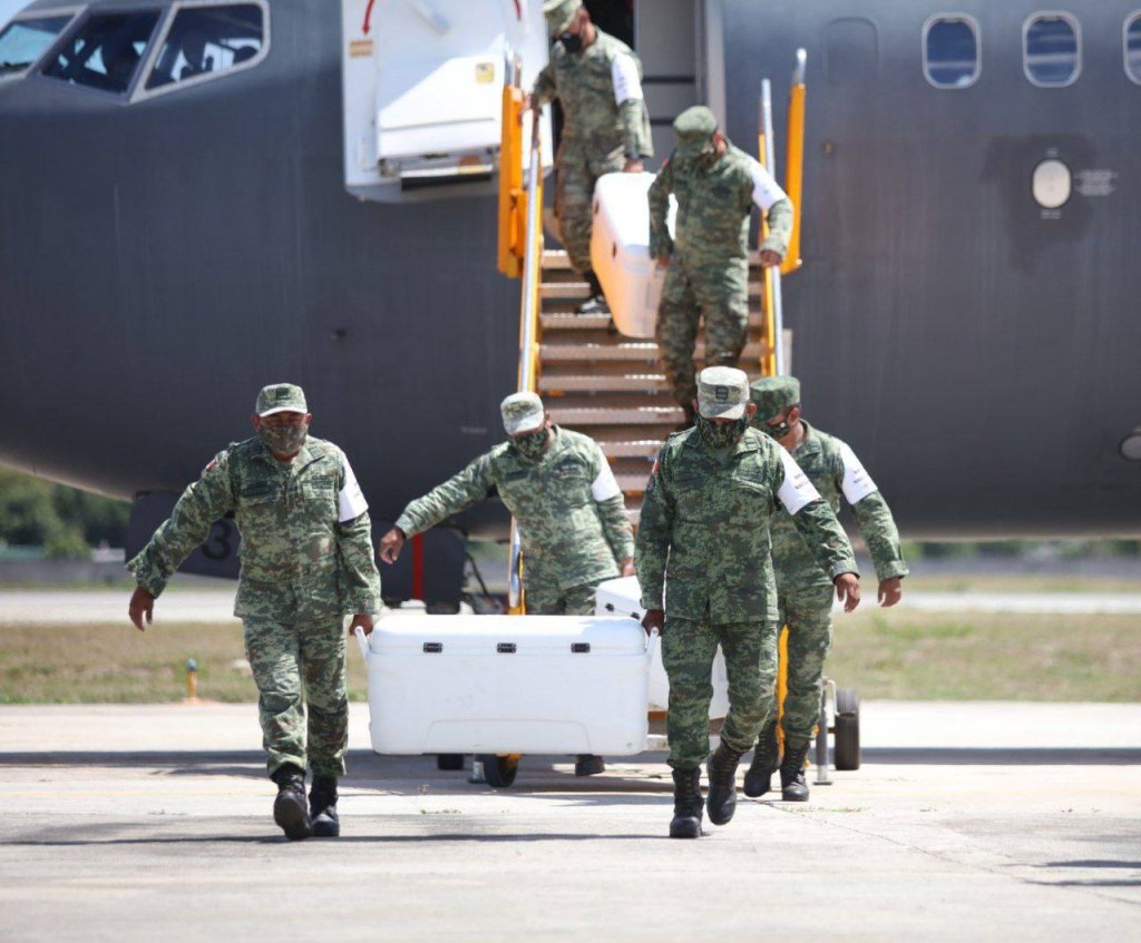 Acompañado del coordinador Estatal para la Vacunación Covid-19, capitán de Corbeta Carlos Gómez Montes de Oca, Hernández Fuentes constató la descarga del lote a cargo del personal del Ejército, el cual fue colocado en un camión thermoking de la SSY, para luego ser trasladadas al almacén estatal de vacunas, desde donde se distribuirán a los lugares donde se aplicarán.