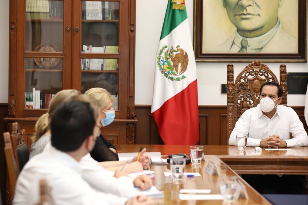 -El Gobernador Mauricio Vila Dosal se reunió con la diplomática finlandesa, quien le externó el interés por establecer lazos de cooperación en materia de desarrollo económico y tecnológico, educación, manejo de residuos, telecomunicaciones, digitalización y mejores prácticas en transparencia, entre otros.