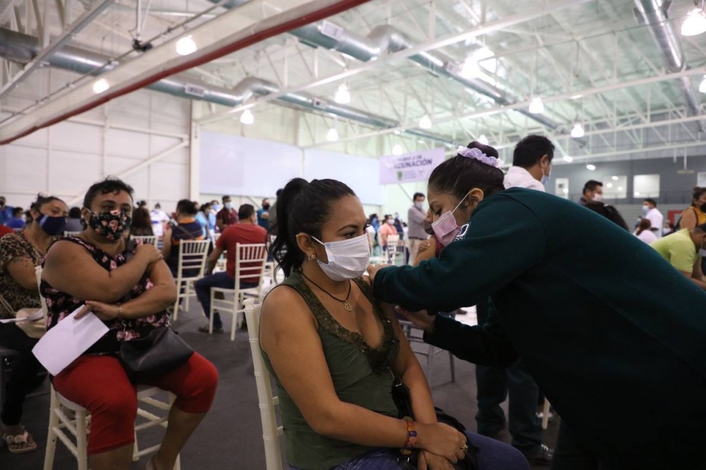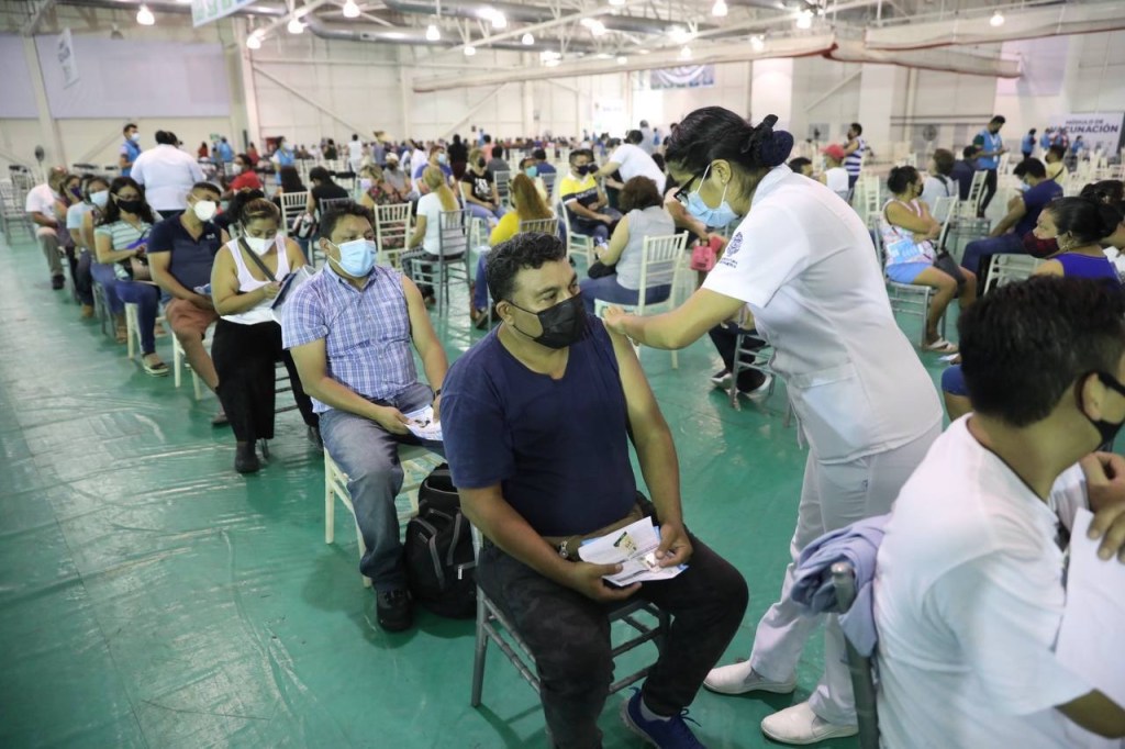 Solo ayer se aplicaron un total de 17,474 primeras dosis de AstraZeneca en personas de entre 40 y 49 años de Mérida, las cuales 1,180 fueron administradas en la ESAY; 1,290 en Villa Palmira; 1,934 en el local de la Canaco Servytur; 1,213 en la Base Aérea número 8, 1,220 en el Instituto Tecnológico de Mérida; 6,940 en el Siglo XXI; 2,817 en la Unidad Deportiva Kukulcán; y 800 en el 11 Batallón.