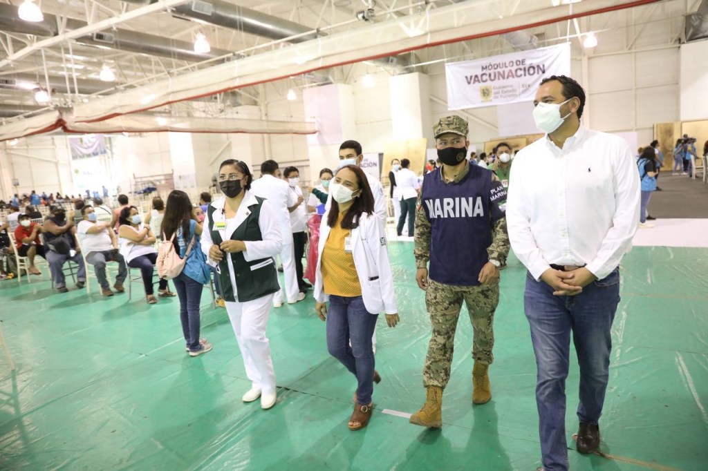 Por instrucción del Gobernador Mauricio Vila Dosal, el titular de la Secretaría de Salud (SSY), Mauricio Sauri Vivas, visitó el lugar habilitado en la Unidad Deportiva Kukulcán para verificar la aplicación de primeras dosis a ese grupo de la población de Mérida, la cual se realiza hasta el día 14 de este mes en 2 macrocentros y 6 módulos distribuidos estratégicamente en la ciudad. Cabe mencionar, que el martes 15 de junio se atenderá a las personas que tenían cita pero que, por algún motivo, no pudieron acudir el día y la hora que le correspondía.