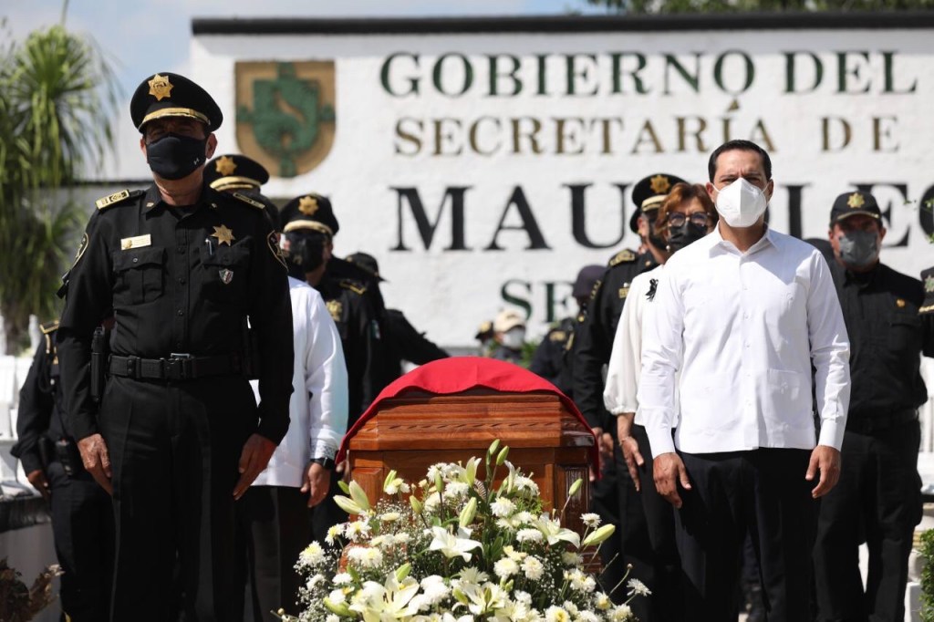 Al dirigir un mensaje en el sepelio del elemento de 23 años, realizado en el Mausoleo de la Secretaría de Seguridad Pública (SSP) en el Cementerio de Xoclán de esta ciudad, el Gobernador expresó su más sentido pésame a los familiares y amigos, a quienes, reiteró, cuentan con todo su respaldo y apoyo por parte del Gobierno del Estado. Asimismo, lamentó la muerte de la joven madre a la que se le privó de la vida como parte del doble homicidio que se suscitó esa mañana. «Sin duda, la pérdida de cualquier vida como producto de la violencia es imperdonable».