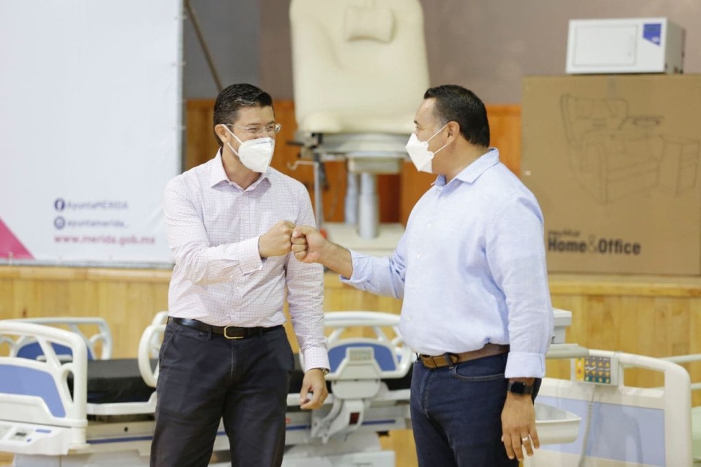 El Concejal encabezó esta mañana, en la Unidad Deportiva Francisco de Montejo, la donación de insumos y aparatos médicos por parte de la empresa “Equipamiento y Consultoría Integral”, la cual forma parte de la red de apoyo “Mérida Nos Une”.