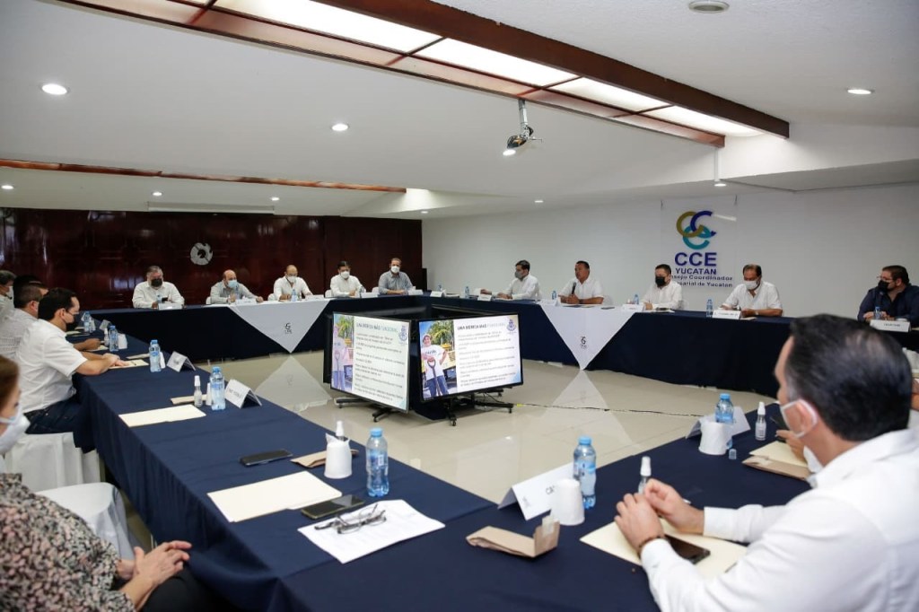 En la reunión que tuvo lugar en las instalaciones de la CANACINTRA, participaron Fernando Ponce Díaz e Iván Rodríguez Gasque, presidentes de la Confederación Patronal de la República de México, Centro Empresarial de Mérida (COPARMEX) y de la Cámara Nacional de Comercio, Servicios y Turismo de Mérida (CANACO).