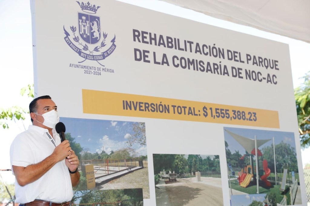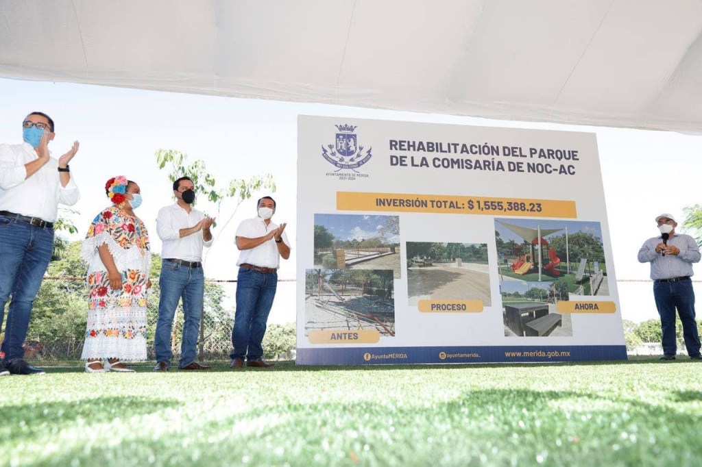 “Aquí estuvimos desde el primer momento, el Gobierno del Estado y el Ayuntamiento de Mérida trabajando de manera coordinada y para nosotros era muy importante también reactivar el ánimo de la comisaría de Noc-Ac, por eso, en conjunto con el Ayuntamiento, emprendimos diversos apoyos para respaldar a los habitantes y quiero felicitar al alcalde porque lo que hoy se ve en Noc-Ac con el renovado parque y la rehabilitación de calles, es una atención completa a la población”, afirmó el Gobernador durante su tercera visita a esta comisaría meridana, la cual resultó la más afectada por las intensas lluvias en 2020.