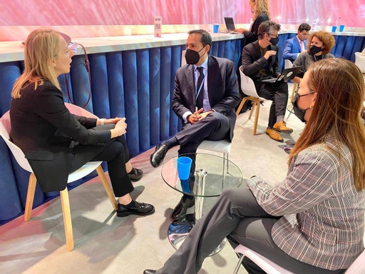 Como parte de su segunda jornada de actividades dentro de esta Cumbre mundial, Vila Dosal se reunió con Jenny Mclnnes, directora de Financiamiento y Cambio Climático para el UK Partnering for Accelerated Climate Transitions (UK PACT), programa financiado por el Gobierno británico para apoyar a países y territorios, en la implementación de acciones que permitan disminuir sus emisiones de carbono, con quien abordó los planes y las oportunidades de colaboración futura.