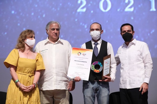 Mérida, Yucatán, 19 de noviembre de 2021.- Por ser novedosos, creativos y contar con el potencial de incrementar la estadía de los visitantes, tres proyectos y productos que contribuyen a la diversificación turística de Yucatán fueron reconocidos con el Premio a la Diversificación del Producto Turístico Mexicano 2020, en una ceremonia encabezada por el Gobernador Mauricio Vila Dosal y el titular de la Secretaría Turismo federal (Sectur), Miguel Torruco Marqués.