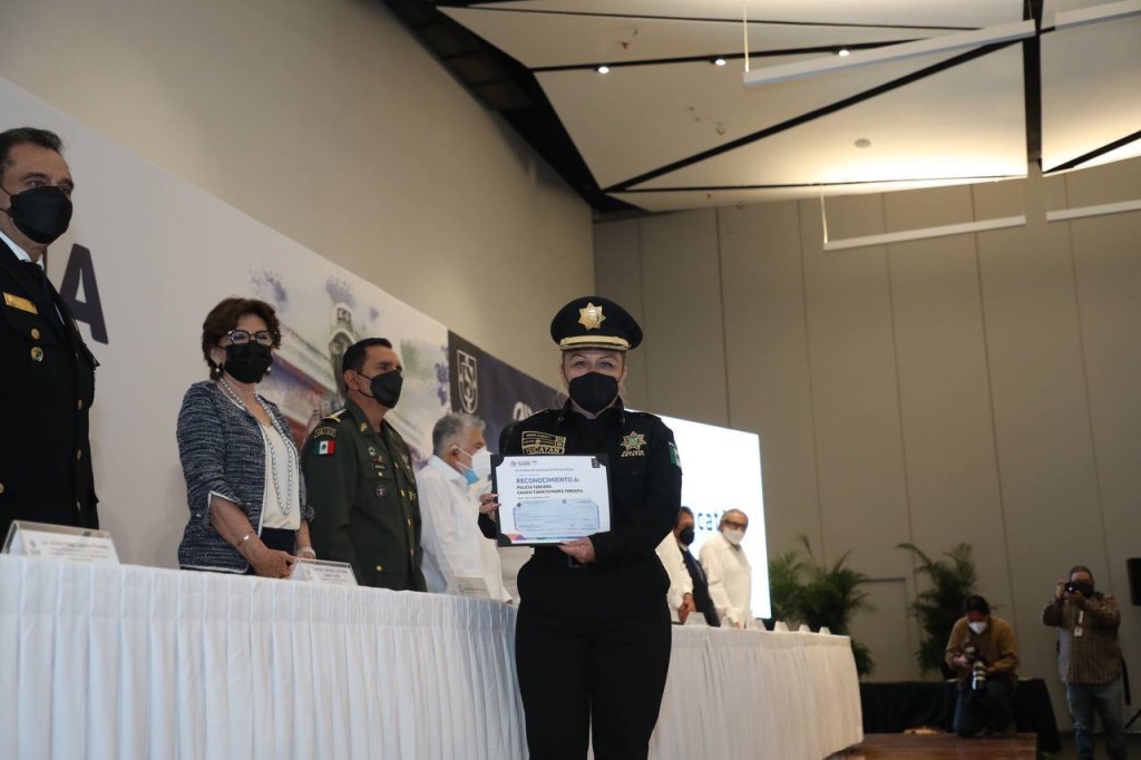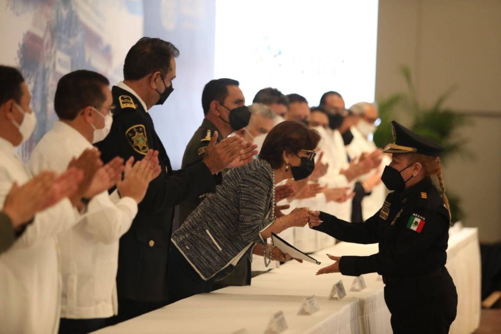Acompañada del comandante de la SSP, Luis Felipe Saidén Ojeda, la funcionaria reconoció con placas e incentivos económicos la relevancia del sector como pilar de la seguridad, por lo que se distinguió a 643 elementos por 45, 40, 35, 30, 25, 20, 15 y 10 años de servicio que han brindado en su noble labor y a 348 con el “Mérito policial”, a quienes tuvieron una destacada actuación y demostraron valentía en su trabajo.