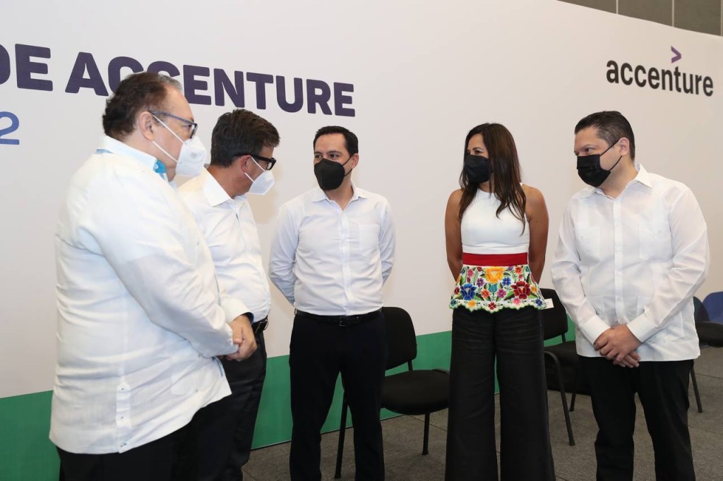 Mérida, Yucatán, 10 de enero de 2022.- Jóvenes yucatecos especialistas en tecnologías de la información tendrán mayores oportunidades laborales y de crecimiento tras el establecimiento en Tekax, Valladolid y Mérida de los Centros de Tecnologías Avanzadas de Accenture, una de las mejores empresas para trabajar en México, que ofrece servicios tecnológicos e innovación y que generará 1,000 nuevos empleos.