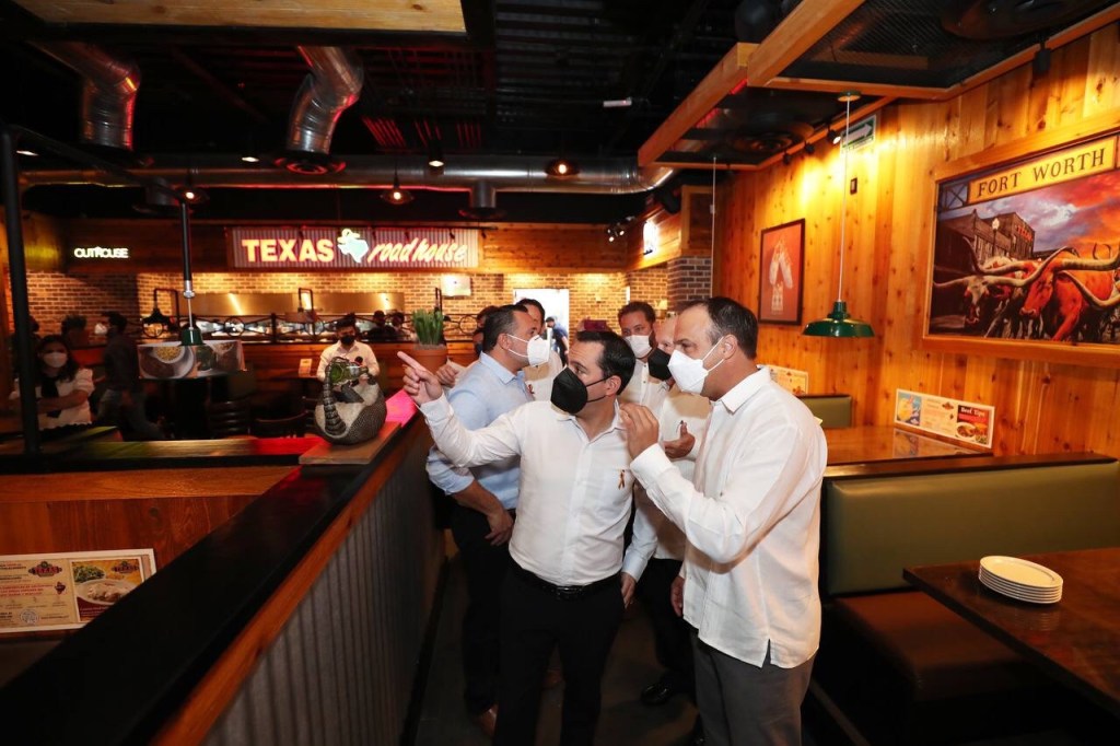 Antes de retirarse del lugar, el Gobernador realizó un recorrido por las áreas de cocina, comedores y barra, y degustó algunos de los diversos platillos que ofrece este restaurante, al estilo texano.