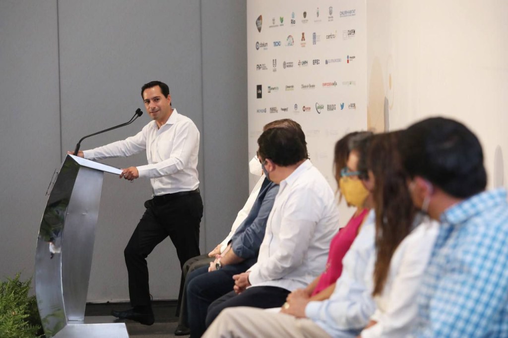 Acompañado del y las titulares de las Secretarías de Fomento Turístico (Sefotur), Michelle Fridman Hirsch; Económico y Trabajo (Sefoet), Ernesto Herrera Novelo, y Desarrollo Sustentable (SDS), Sayda Rodríguez Gómez, el Gobernador recordó que la iniciativa de la Agenda 2040 salió de una ponencia en este ejercicio, por parte del mandatario de Antioquia, Colombia.