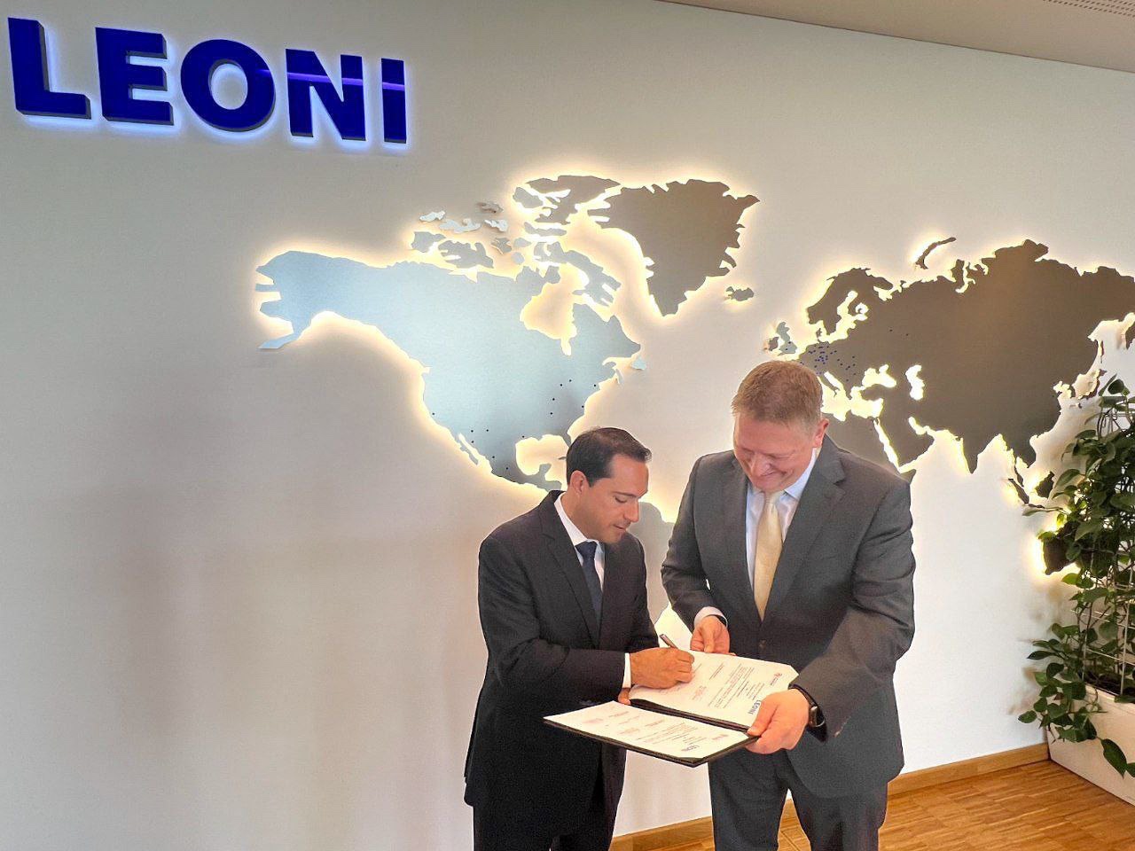 Luego de una visita y recorrido por las instalaciones de Leoni en dicha ciudad, Vila Dosal y el vicepresidente senior de recursos humanos de Leoni, Michael Detert, signaron el acuerdo que reafirma los lazos de colaboración con esta empresa que es un proveedor global de productos, soluciones y servicios para la gestión de datos y energía en el sector de la automoción y otras industrias.