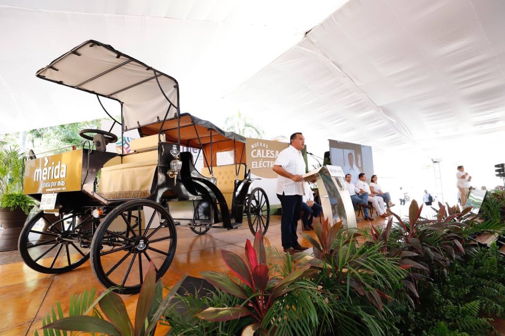 Al dirigir su mensaje, el Gobernador Mauricio Vila Dosal, señaló que, el inicio de operaciones de las calesas eléctricas son un cambio que va a perdurar a través del tiempo a través de la innovación, la transformación y la búsqueda de la tecnología sustentable, por lo que felicitó al Alcalde, Renán Barrera Concha, por cumplir una promesa que está transitando hacia un futuro más sustentable y a pasos agigantados para seguir haciendo de Mérida y Yucatán, un marco de referencia a nivel nacional e internacional.
