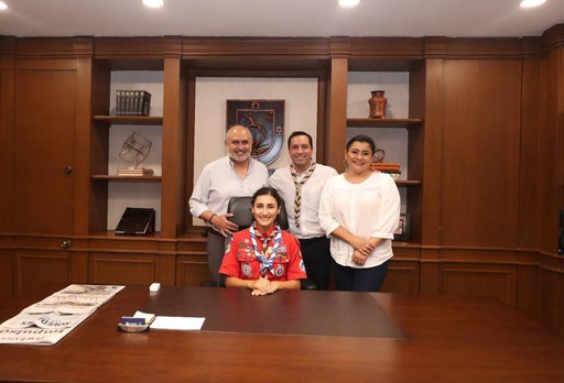 Durante el encuentro, Paz Echeverría entregó a Vila Dosal la insignia que representa al movimiento Scout en la provincia de Yucatán, así como la conmemorativa única de la Semana Scout 2022.