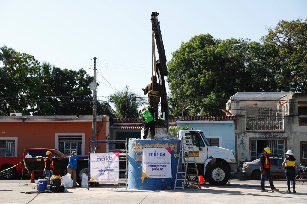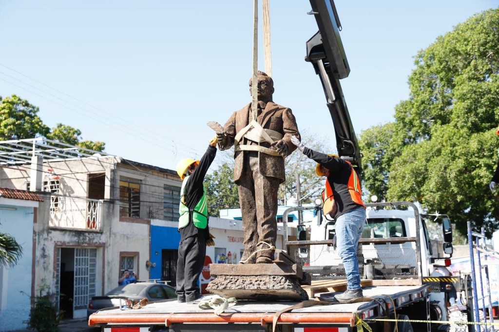 “Este elemento ha estado por aquí desde 1973 y de acuerdo a las indicaciones del Alcalde Renán Barrera lo estamos retirando para su cuidado y para facilitar los trabajos de remodelación del área a cargo del Gobierno del Estado”, comentó.